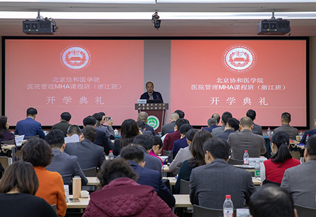 2018年11月24日,北京协和医学院医院管理MHA课程班(浙江班)开学典礼暨开学第一课在物产中大管理...