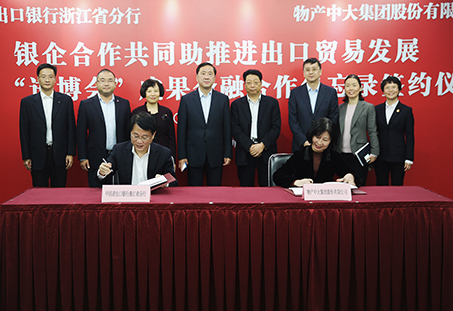 11月15日上午,物产中大集团(以下简称:集团)与中国进出口银行浙江省分行(以下简称:进出口银行)共同举...