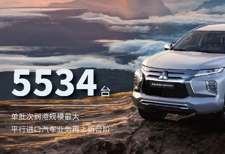 6月8日,装载着5534台进口三菱汽车、分别来自泰国林查班港和日本名古屋港的两艘大型汽车专用滚装船,正在宁...