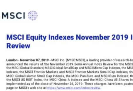 11月8日晨间,明晟(MSCI)正式宣布了指数季度调整结果,同时将实施此前宣布的中国A股在MSCI新兴市...