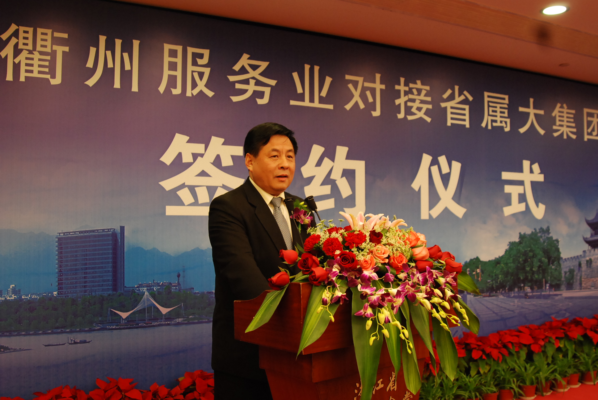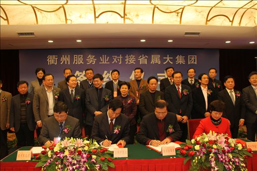 1月18日,衢州服务业对接浙江省属大集团签约仪式在省人民大会堂举行。省委常委、副省长葛慧君出席仪式并讲话,省政府副秘书长陈龙,省国资委主任陈正兴,集团公司胡江潮董事长、隋剑光总经理、陈敏副总经理、沈光明副总经理,衢州市四套班子领导,省级相关部门负责人等出席仪式。胡江潮董事长在签约仪式上致辞,隋剑光总经理代表集团公司与衢州市政府签订战略合作协议。