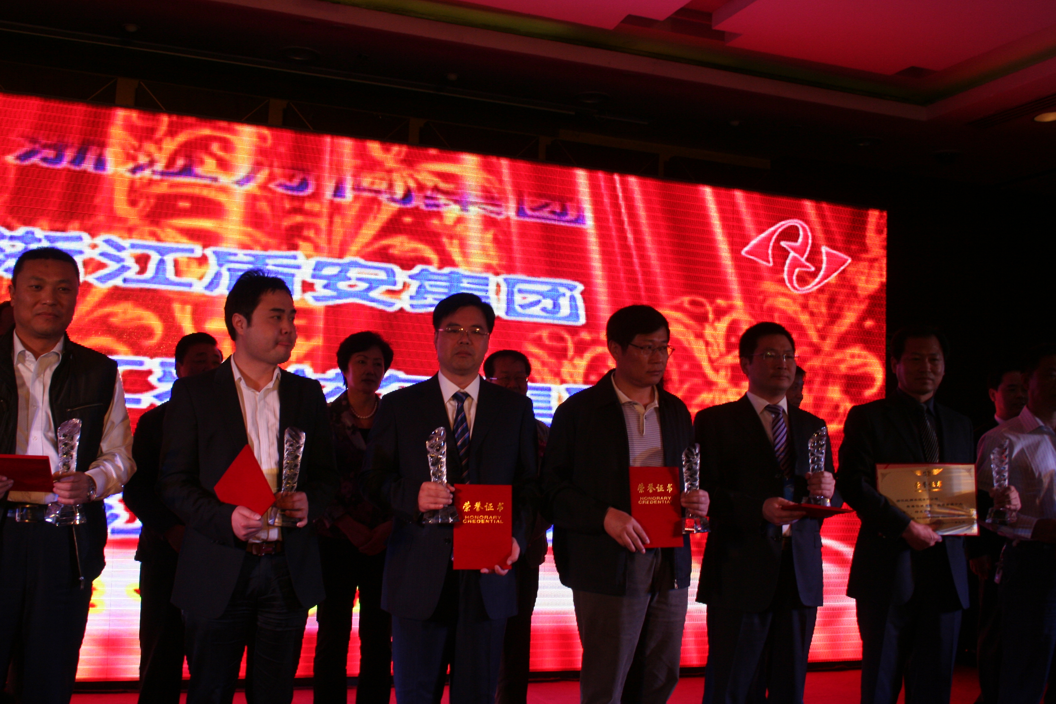 9月22日,在由新疆维吾尔族自治区招商发展局、浙江省人民政府经济合作交流办公室以及浙江省援疆指挥部联合主办的“天下浙商天山行”庆典上,为表彰在新疆建设中做出突出贡献的浙商,推出了“投资新疆10大浙商” 、“10大杰出浙商”等榜单,我集团公司荣获“投资新疆10大浙商”荣誉称号。物产新疆公司徐宏生总经理(前排左三)代表浙江物产上台领取了证书及奖杯。(张晓晨)