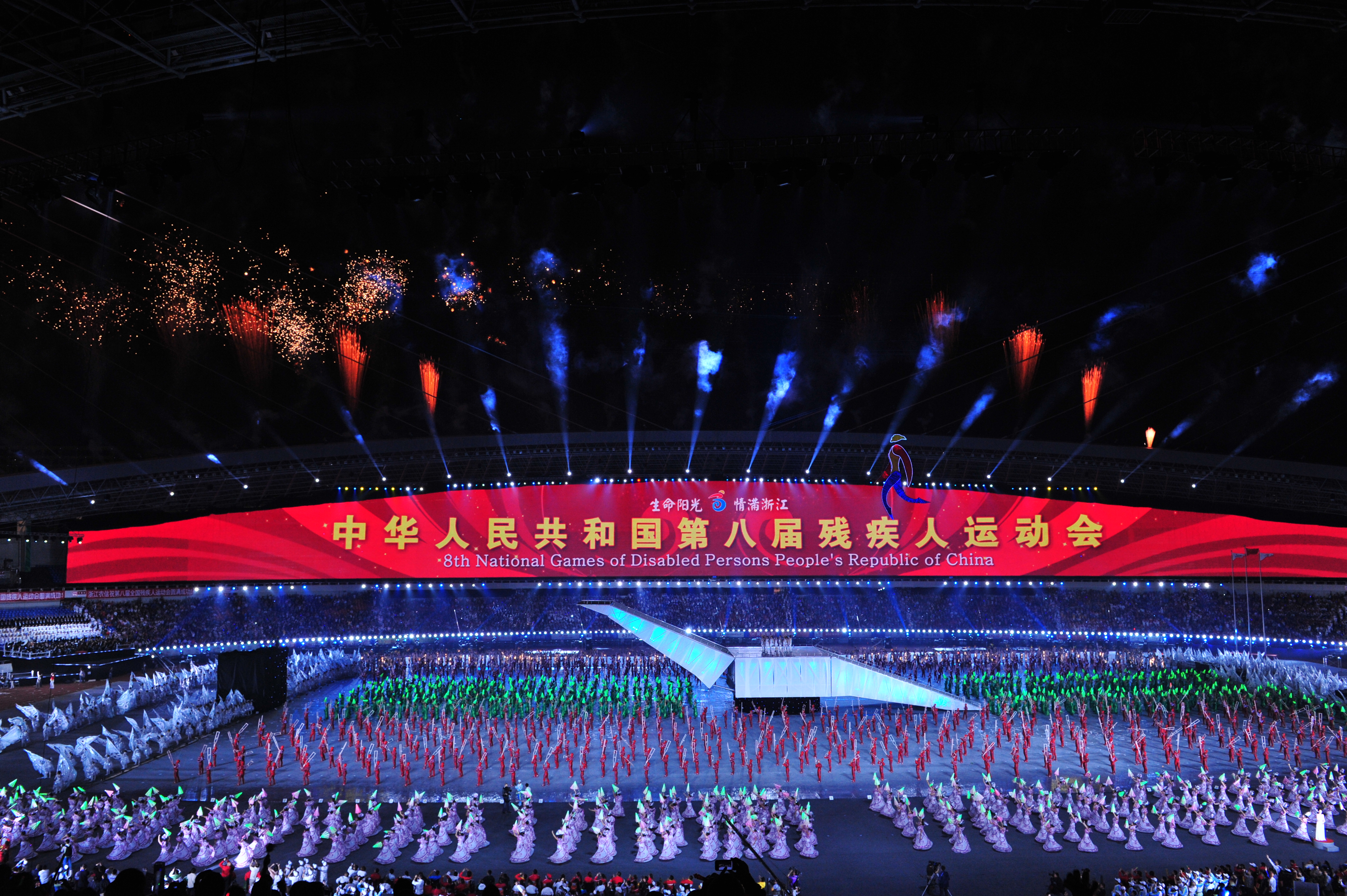 10月11日晚,第8届全国残疾人运动会开幕仪式在杭州黄龙体育中心隆重举行。中共中央政治局委员、国务院副总理、国务院残疾人工作委员会主任回良玉出席大会并宣布第8届残运会开幕。这是继2008年北京残奥会之后举行的又一次全国综合性残疾人体育赛事,也是新中国成立以来我省承办的最大规模的全国性综合运动会。我集团积极支持残运会在浙江的成功举办,早在去年10月就向残运会组委会捐款人民币200万元,以实际行动为残疾人事业奉献爱心,体现大企业应尽的社会责任。(韩耀明/文  叶如海/摄)