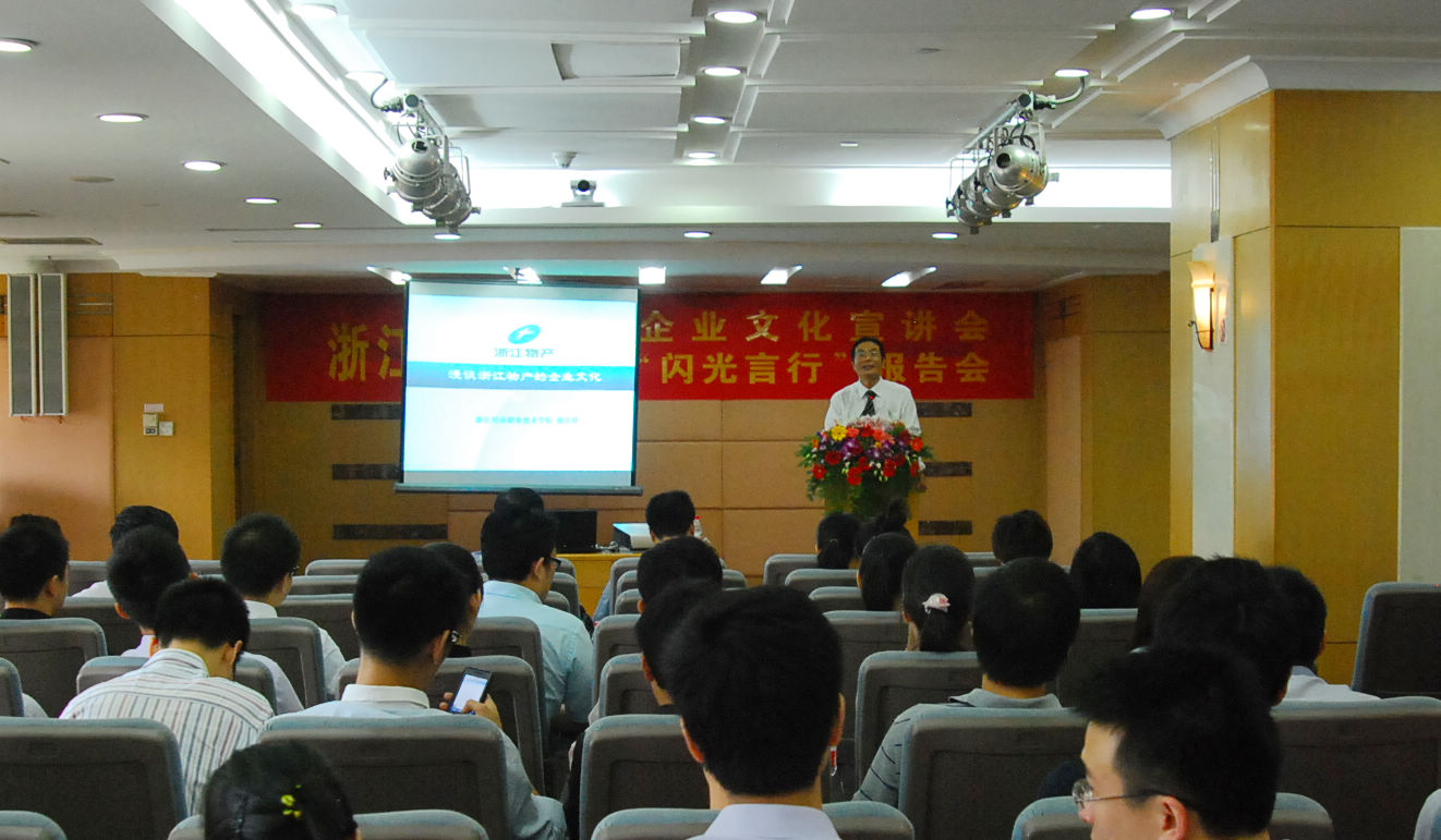 在企业文化宣讲中,邵庆祥副院长从“认知企业文化”、“浙江物产的企业文化”和“500强与企业员工”等3个方面,对企业文化及其重要作用、浙江物产企业文化内涵和“世界500强”对企业员工的素质要求等进行了深入的阐述。邵副院长的宣讲旁征博引,深入浅出,既有对企业文化的哲理思考和世界500强企业文化建设成败的深入剖析,又有对浙江物产企业文化建设成功实践案例的提炼和总结,为大家作了一场生动的企业文化宣讲报告。