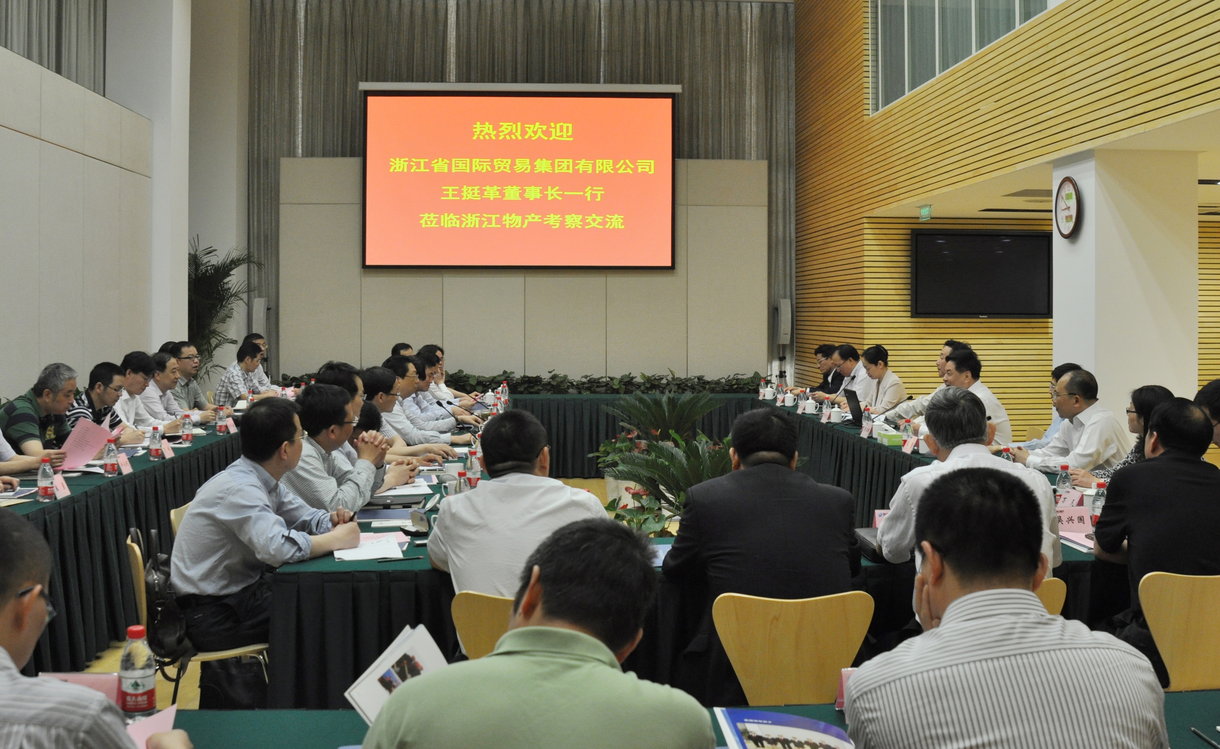 胡董事长向国贸集团领导一行简要介绍了浙江物产集团的基本情况、近年来在完全竞争领域发展壮大的经验做法以及进一步转型升级的主要思路和举措等。隋总经理从作用意义、管理模式、具体做法、主要成效等4方面,对浙江物产加强资金集中管理的情况作了详细的介绍。