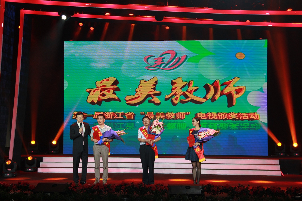 9月22日晚,浙江省第一届“最美教师”颁奖典礼在浙江工商大学下沙校区举行。浙江经济职业技术学院援疆教师崔玉江荣获浙江省第一届十佳“最美教师”称号,成为全省70余万教师中的杰出代表受到表彰。崔玉江目前是我省援疆次数最多的教师,有三段援疆经历。因其援疆事迹突出,得到评委会、参评350万网民的充分肯定,并作为高职院校的唯一代表入选。图为“最美教师”颁奖典礼颁奖现场,崔玉江接受采访