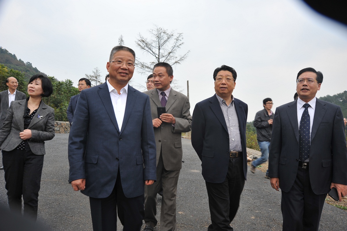 11月6日下午,黄旭明副省长在省政府副秘书长陈龙,省林业厅厅长林云举,杭州市委常委、余杭区委书记徐文光,杭州市副市长戚哮虎,杭州市政府副秘书长赵国钦,余杭区副区长李红良,和集团董事长王挺革,副总经理王露宁等陪同下,来到位于余杭径山镇的物产长乐公司长乐林场考察。