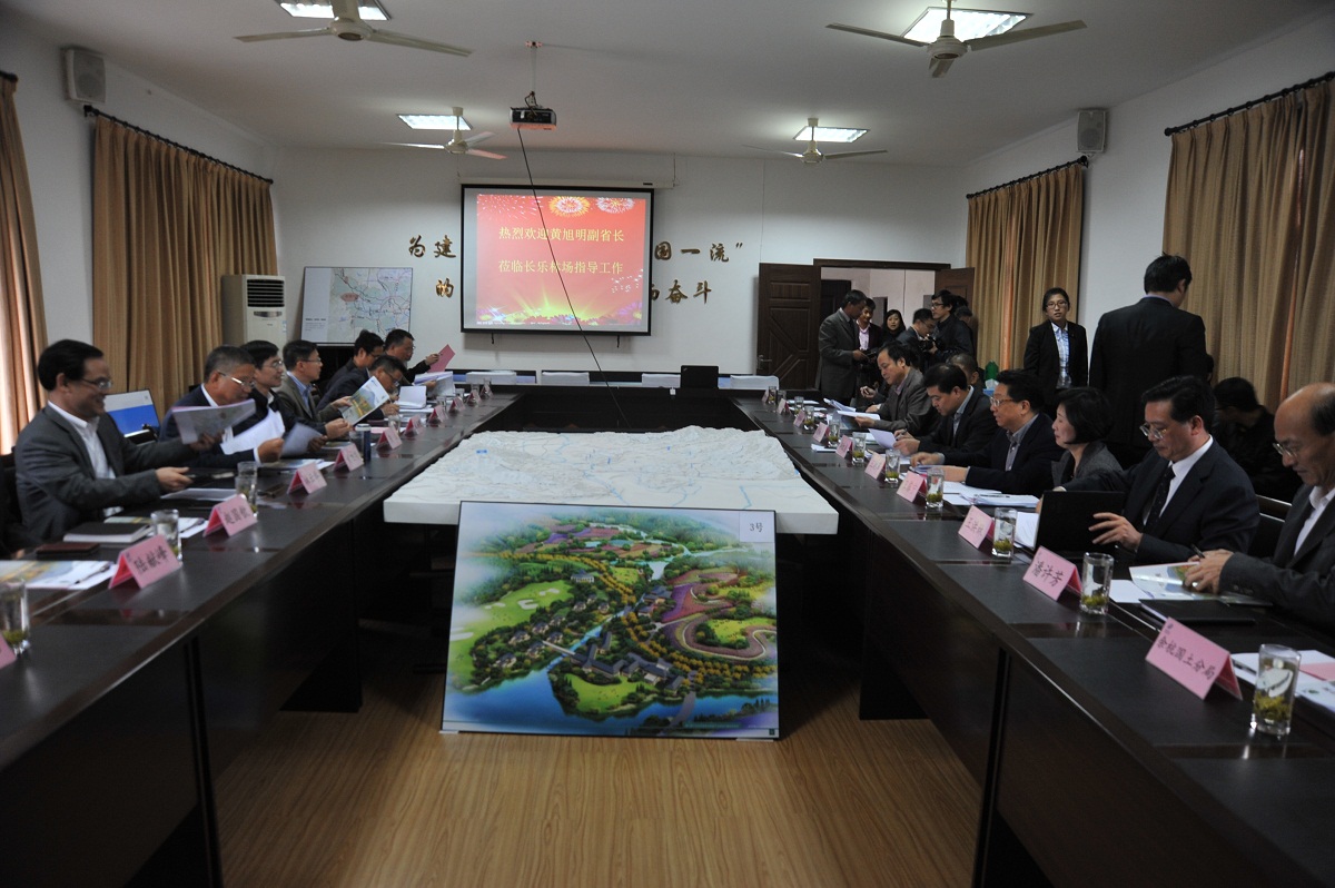 黄旭明副省长实地查看了林场养老区块、珍贵树种基地和森林公园,对林场优良的生态环境、森林资源和科学栽培表示赞赏。在林场场部会议室,黄副省长听取了余杭区、集团和物产长乐公司关于长乐养老养生创龄产业园情况的汇报。