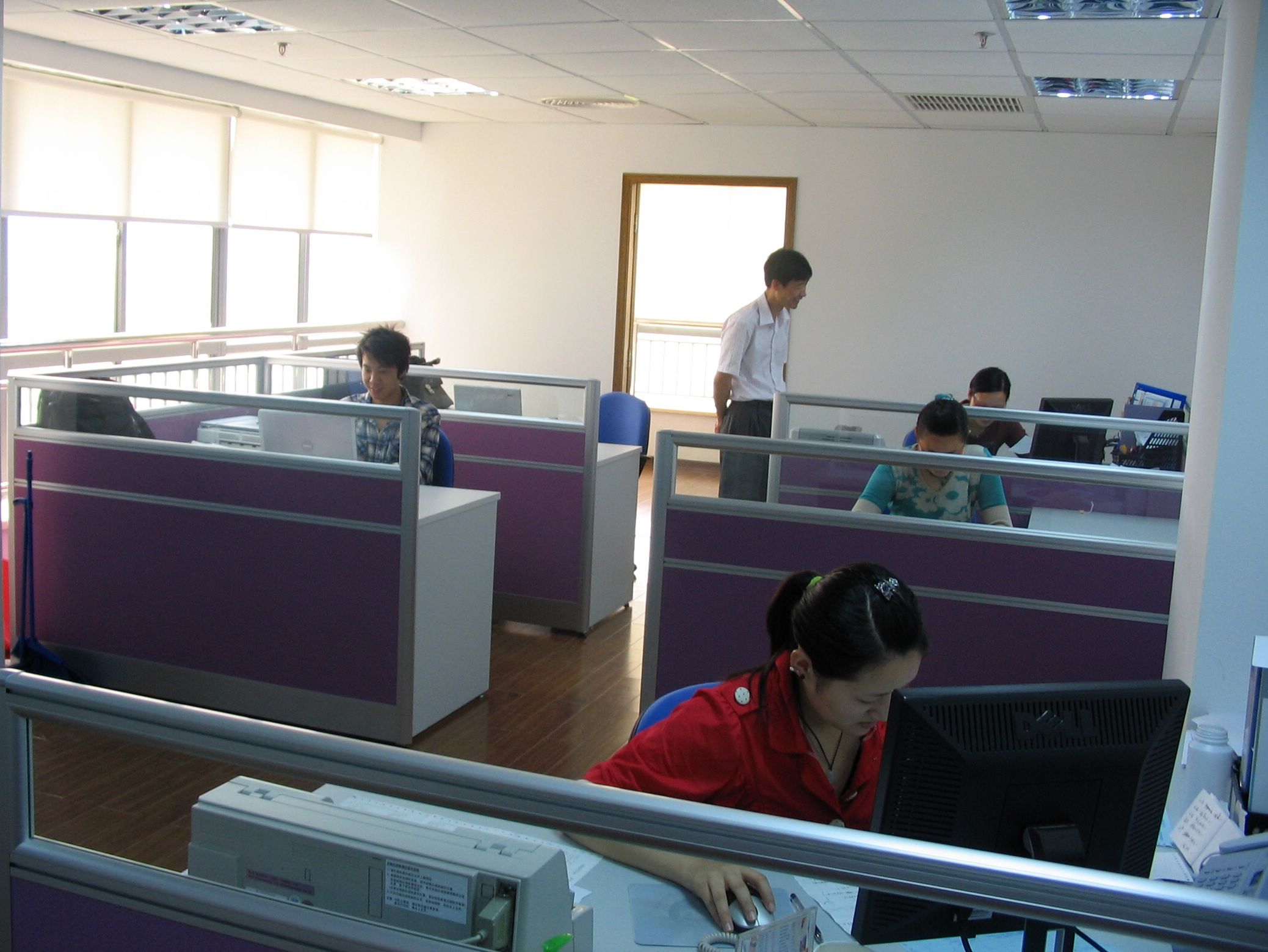 在集团公司的统一协调下,自四月下旬以来,各成员企业已经陆续入驻集团台州区域集成运作总部——位于台州经济开发区的天和大厦。目前,台州经济开发区浙金钢材有限公司、台州物产元通工贸有限公司、浙江元通汽车零部件有限公司(筹)、台州瑞鸿达贸易有限公司、浙江物产燃料集团台州销售公司(筹)等五家企业已经开张营业。图为总部工作现场。(赵昕东)