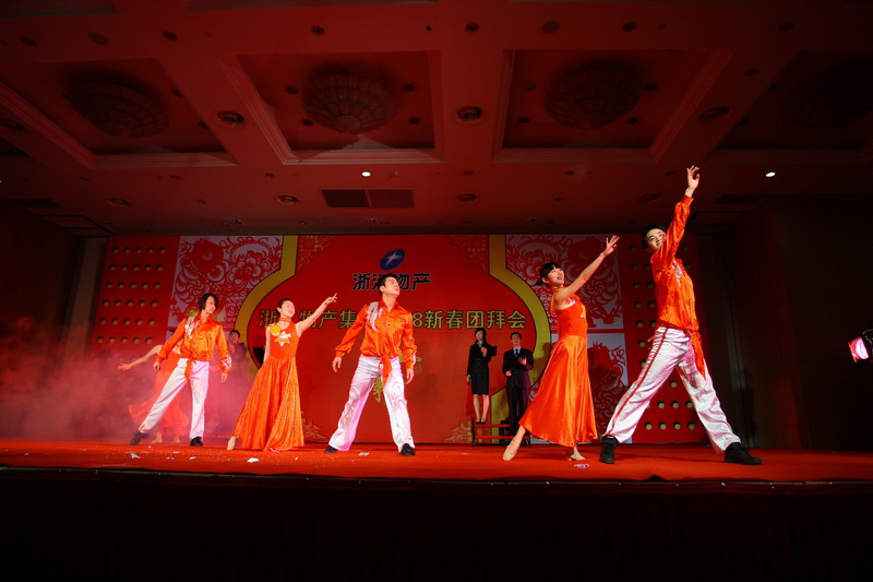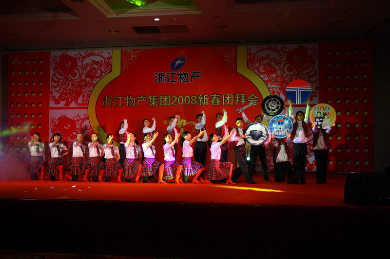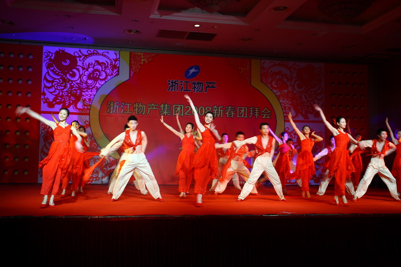 会上,集团领导还向集团控股以上成员单位负责人颁发了2007年度考核奖。团拜会文艺演出在开场歌舞《喜庆的日子》中拉开帷幕。物产金属、物产元通、物产国际、中大股份、物产燃料、物产化工、物产物流和浙经院等集团成员单位表演了精彩的文艺节目。