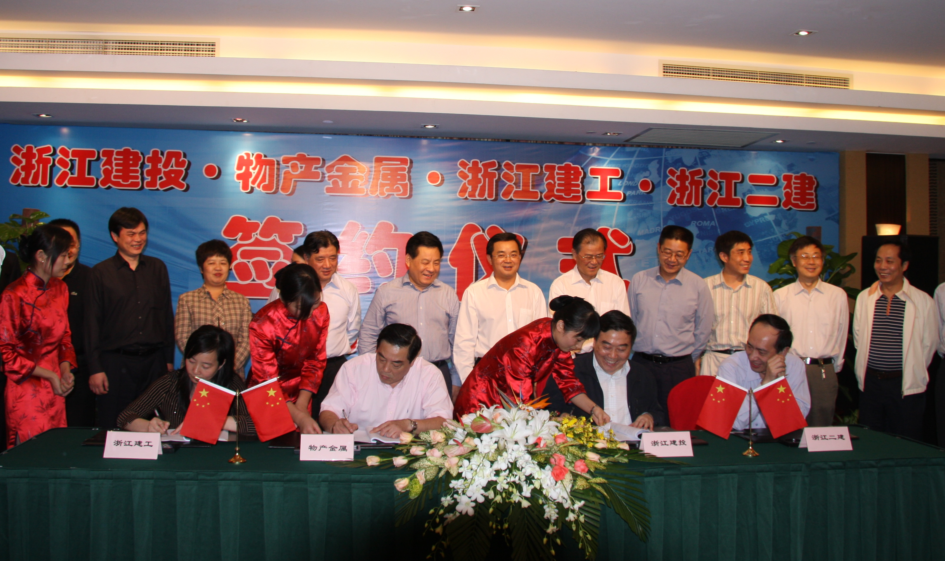 10月16日,浙江物产金属集团有限公司和浙江建设投资集团有限公司及其旗下浙江建工、浙江二建合作设立合资公司签约仪式,在杭州国际假日酒店举行。此举标志着“浙江物产”与“浙江建投”两大省属企业集团紧密战略合作的深化和加强。