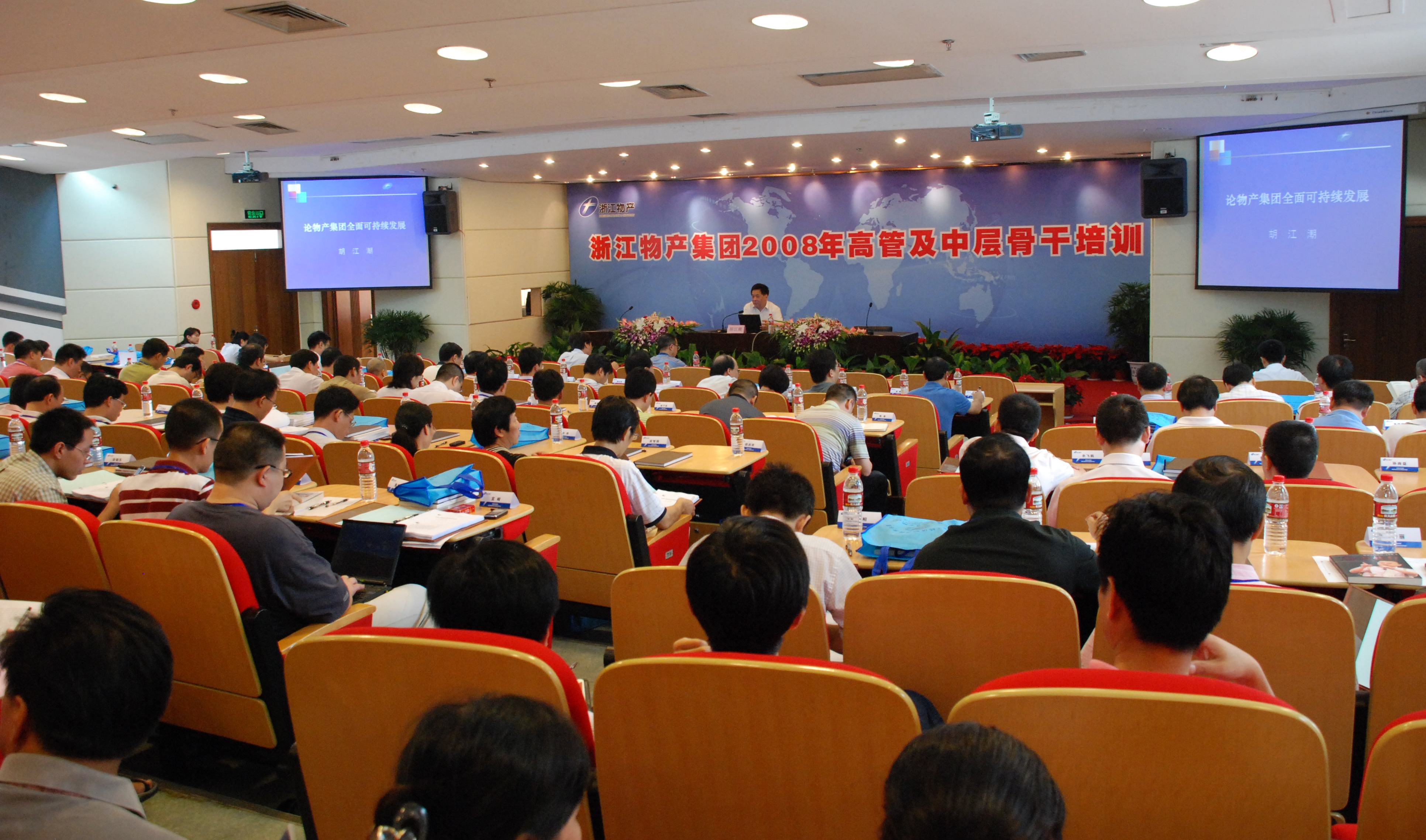 在两期培训班上,集团领导亲自带头授课,充分调动了全体学员学习的主动性和积极性。集团公司党委书记、董事长胡江潮先后为学员们作了题为《论浙江物产的全面可持续发展》与《论浙江物产的核心价值观与企业竞争力》的讲课。胡董事长围绕浙江物产经营规模上“千亿”台阶后,如何“由做大向做强升华、由战略引领向价值观引领升级”,实现集团全面可持续的发展,努力把浙江物产打造成为具有国际竞争力的、惠及全体员工的一流现代流通企业集团,从战略升级、文化引领、创新创业、素质提升等角度,进行了全面而深刻的理论阐述和实践指导。集团公司孟伟林总经理和隋剑光副书记则分别作了题为《审时度势转型升级 创新管理 持续发展》与《培养物产集团职业经理人》的讲课,从推进集团转型提升、推进流通产业化、良性稳健发展和打造忠诚于物产事业的优秀经理人队伍的角度,分别进行了授课。