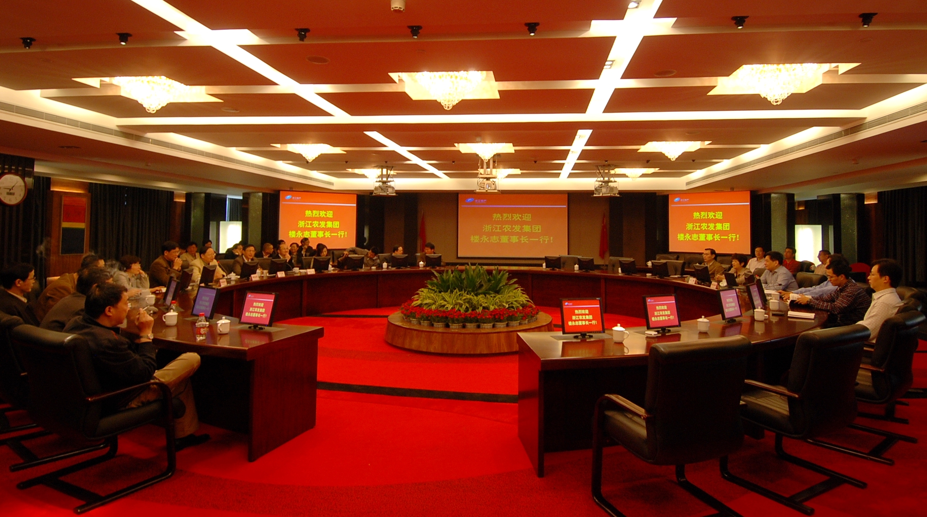 4月28日,浙江省农村发展集团有限公司董事长、党委书记楼永志和总经理李立民等领导率农发集团下属各成员单位及总部各职能部门负责人等一行50余人,前来我集团公司就学习实践科学发展观、推进企业可持续发展等进行工作交流。集团公司董事长、党委书记胡江潮和党委副书记隋剑光、副总经理陈敏以及总部有关部门负责人、集团活动办相关成员等参加了座谈交流。胡董事长重点向客人们介绍了浙江物产近年来推进流通产业化发展的主要做法与所取得的初步成果,以及企业迈上“千亿”台阶后对深入学习实践科学发展观、实现“由做大向做强升华、由战略引领向价值观引领升级”的战略思考和主要思路等。楼永志董事长一行还在集团陈敏副总经理的陪同下参观了浙江物产杭州物流基地。 (物产报)