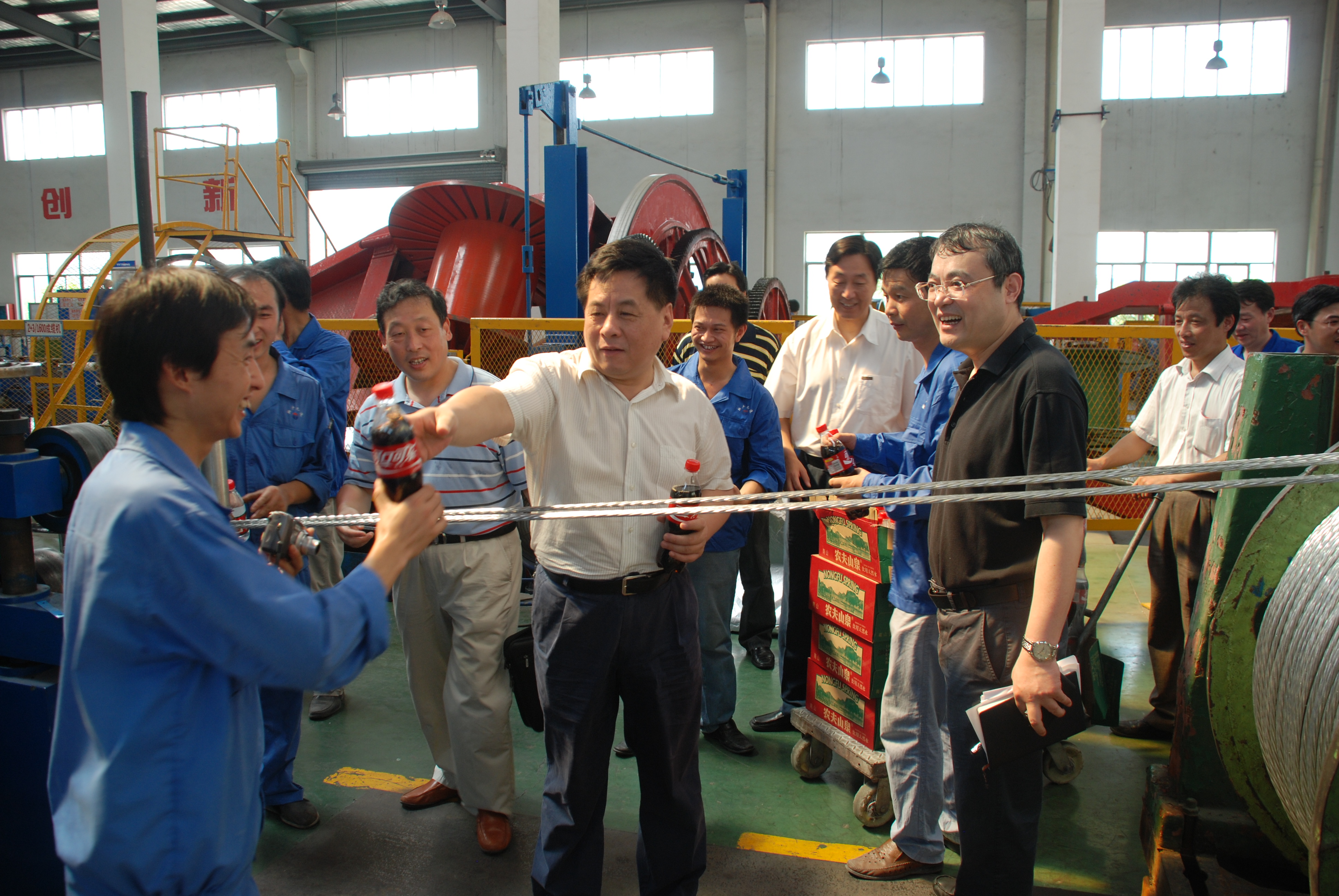 7月21日上午,集团公司党委书记、董事长胡江潮在集团公司党委副书记、物产元通董事长隋剑光和总经理张飚等陪同下,来到物产元通下属基层企业调研,并亲切慰问一线员工。胡董事长一行先后考察了位于余杭崇贤的元通线缆制造公司的集束电缆生产车间和PVC生产车间、元通宇恒电机公司的剪切车间和位于三墩的瑞泰、瑞雪两个汽车4S店,实地察看了员工们的工作环境,询问了解企业的生产经营情况,并对高温作业的生产维修工人不畏高温酷暑、坚守岗位表示亲切慰问,为他们送上了清凉饮品,送上了丝丝清凉和深情问候。调研慰问过程中,胡董事长要求物产元通各基层企业在高温季节一定要高度重视一线员工的防暑降温工作,叮嘱大家在确保工作质量和进度的前提下要合理调度工作时间和强度,给一线员工提供良好的工作条件,做到安全有序生产。同时,他勉励物产元通以科学发展观为指导,继续积极推进流通产业化,进一步清晰商务模式,坚持“一牌两网、三级市场集成营运”和“科、工、贸一体化”的发展思路,确保公司良性稳健发展。