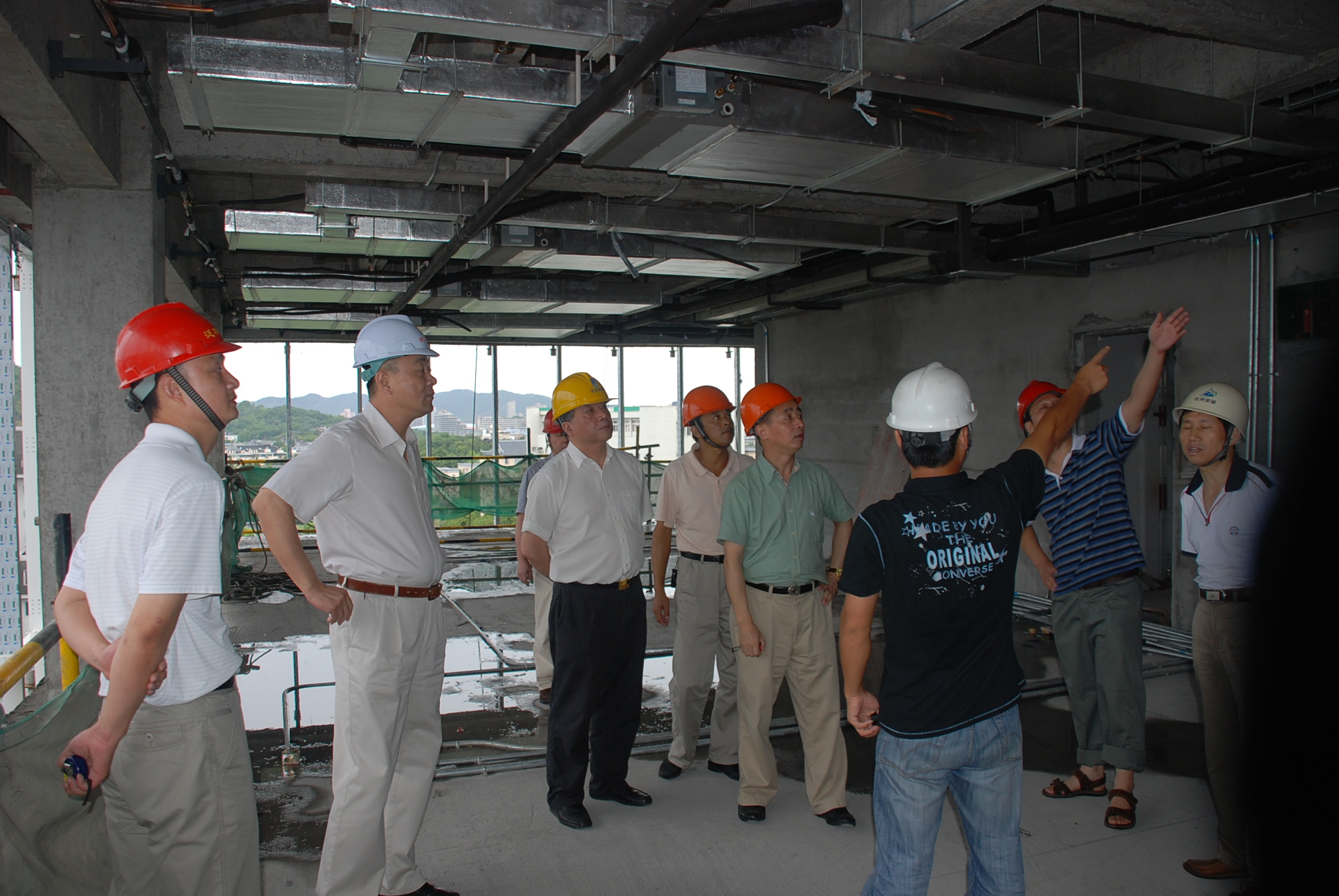 7月24日下午,集团公司副董事长、总经理孟伟林和副总经理胡仲鸣率总部有关部门负责人,来到集团总部大楼建设工地,检查夏季安全生产工作,并慰问现场施工人员。在听取了物产置业公司和施工方省建工集团项目负责人有关施工情况的汇报后,孟总要求:要善始善终地抓好总部大楼施工,加强现场安全监管,尤其是玻璃幕墙吊装等作业,要规范操作,施工进度要服从施工安全和质量要求;物产置业要做好各方面协调工作,尤其是网络信息化建设;要有序推进各项目交叉施工,确保施工进度;要多开现场协调会,及时解决问题。