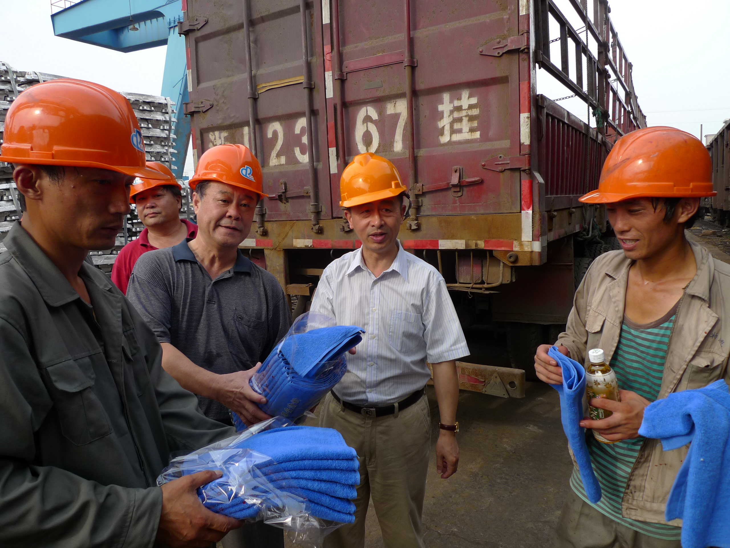 7月23日下午,集团公司胡仲鸣副总经理率集团总部安全管理人员,先后来到物产金属公司下属“浙金物流”半山仓库、物产民爆公司科研大楼等,检查落实夏季安全生产工作,并看望慰问冒着酷暑在露天作业的员工,向他们送去毛巾、清凉饮料等慰问品。