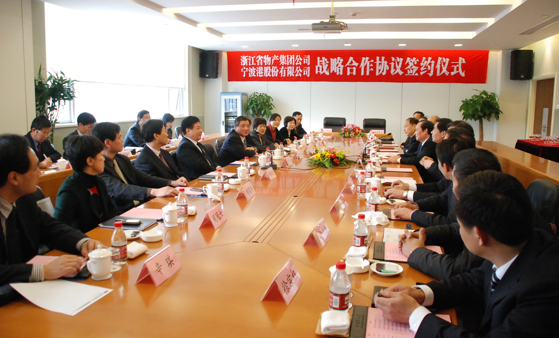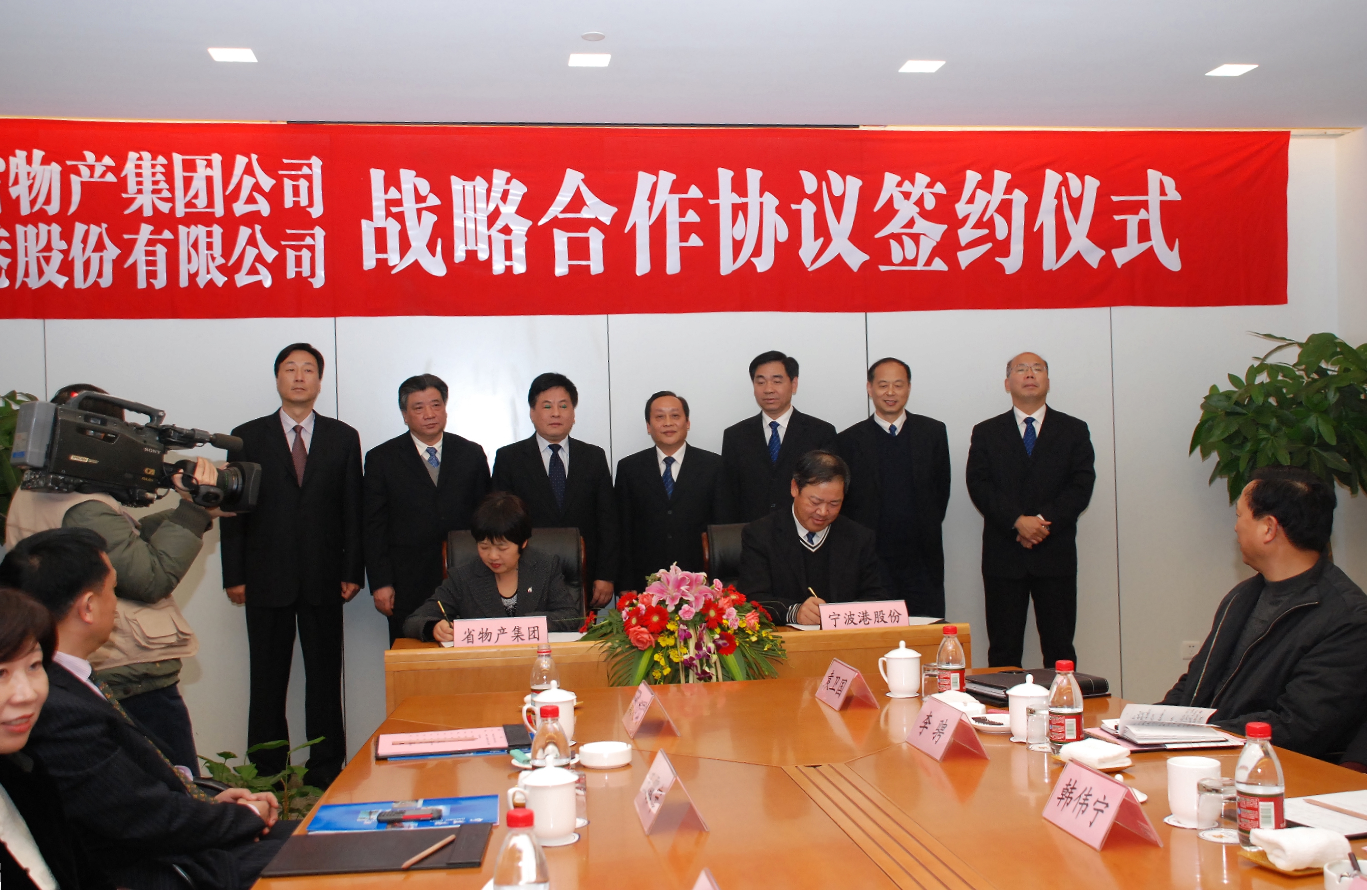 2009年12月16日下午,浙江物产集团与宁波港集团战略合作协议签约仪式在宁波港大厦举行。集团公司领导胡江潮、孟伟林、隋剑光、陈敏以及有关成员公司和总部职能部门负责人,宁波港股份有限公司李令红董事长、闻建耀党委书记、吴金坤总裁、蔡申康副总裁、童孟达总经济师及其相关职能部门和下属公司负责人等出席了签约仪式。陈敏副总经理与蔡申康副总裁分别代表双方共同签署了战略合作协议。此举标志着浙江物产与宁波港长期的全方位的战略合作伙伴关系的良好开端。