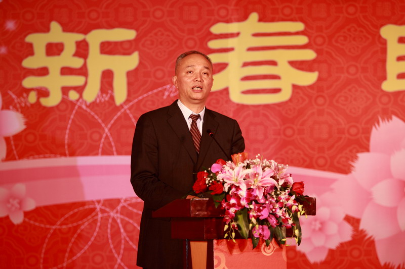 联欢会在欢快热烈的舞蹈《庆典》中拉开帷幕。省委常委、省委组织部部长蔡奇首先致新春贺词。集团公司董事长胡江潮在联欢会上致词。
