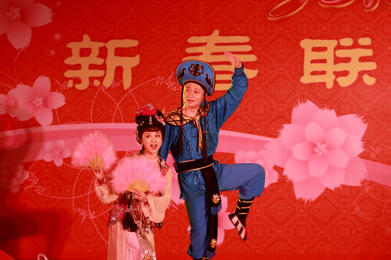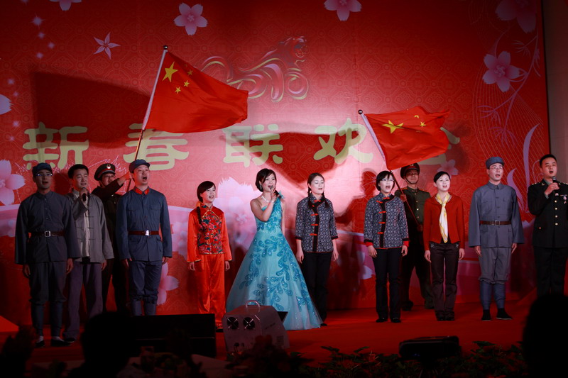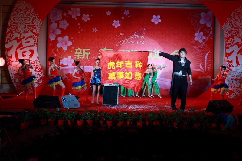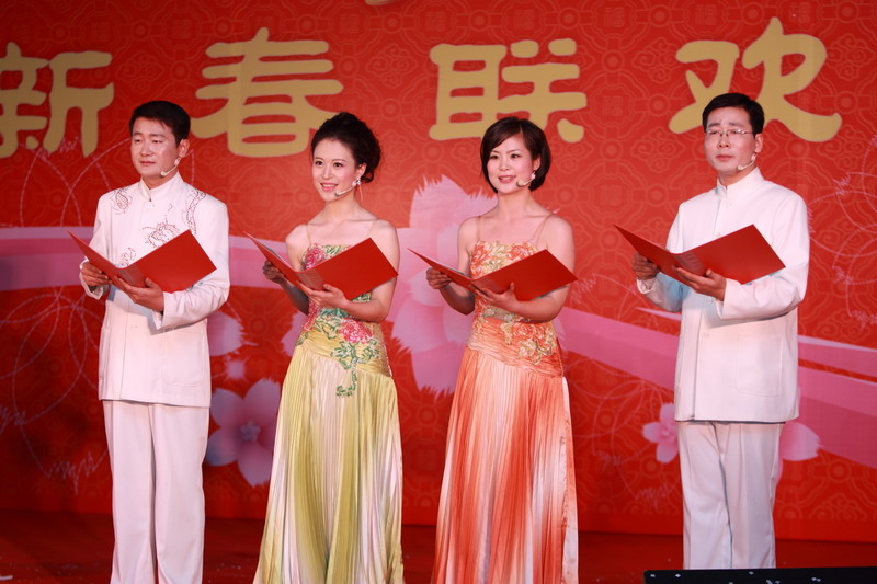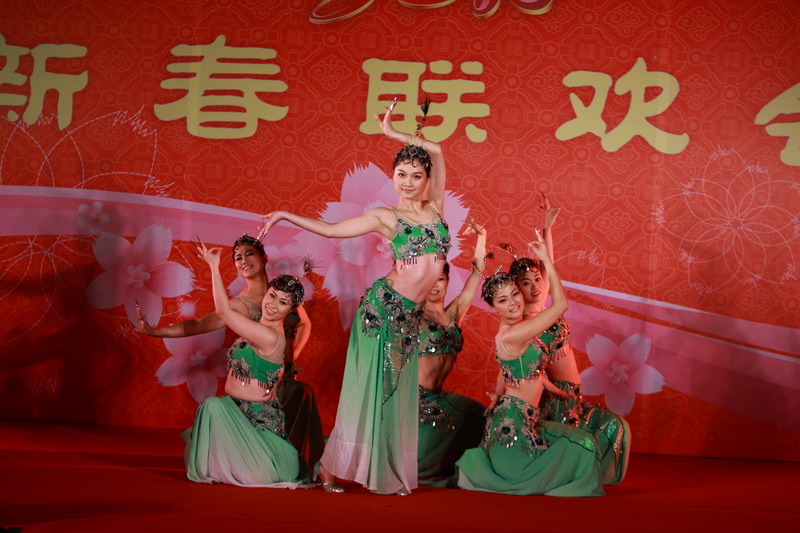 其后,文艺演出正式开始。省委组织部干部首先为大家带来了红歌联唱《八月桂花遍地开》等系列革命歌曲。一改昔日忙碌身影的组工干部们,穿上富有各时代特色的服装,奏起熟悉的乐器,满怀激情唱起欢乐的歌……红旗如画,岁月如歌,一曲曲经典红歌将现场观众的情绪感染到极致,掌声一浪高过一浪。接着,物产中大员工表演了舞蹈——《碧波孔雀》,舞姿表现了一群美丽的孔雀,在春天里欢快地舞蹈、嬉戏,展现了“浙江物产人”在共同的价值观和文化理念引领下,青春灵动、和谐共进的情景;由物产金属公司选送的舞蹈《欢聚一堂》,热情奔放,展现了浙江物产人高歌前进、硕果累累后无比自豪和喜悦的心情;由省委组织部选送的二胡独奏《良宵》,在与古筝的应合中营造了婉约优雅的艺术氛围;由物产国际选送的、来自于南方建材的湖南花鼓戏《刘海砍樵》演绎了一段家喻户晓、感人肺腑的爱情故事。来自省委组织部援疆干部和新疆藉女组工干部合作的歌舞《大阪城的姑娘》,原滋原味地展示了一段新疆的民俗风情;由物产元通公司员工原创的器乐魔术《青春色彩》,将玄幻的魔术与一群朝气蓬勃的年轻人的舞蹈结合在一起,点燃了火红的青春激情;由浙江经济职业技术学院表演的男女声三重唱《共和国之恋》,昂扬激越,唱出了对祖国的热爱和深情;由组织部自己创作并表演的诗朗诵《我们在挑战前乘风破浪》,展现了在促进经济企稳回暖、推动转型升级中,我省组工干部服务大局,实践组织工作价值的风采;由国家一级演员、浙江京剧团的王小军表演的《花好月圆,国泰民安》,寄予了人们对即将到来的虎年里,祝福祖国繁荣昌盛,人民幸福安康的美好憧憬。