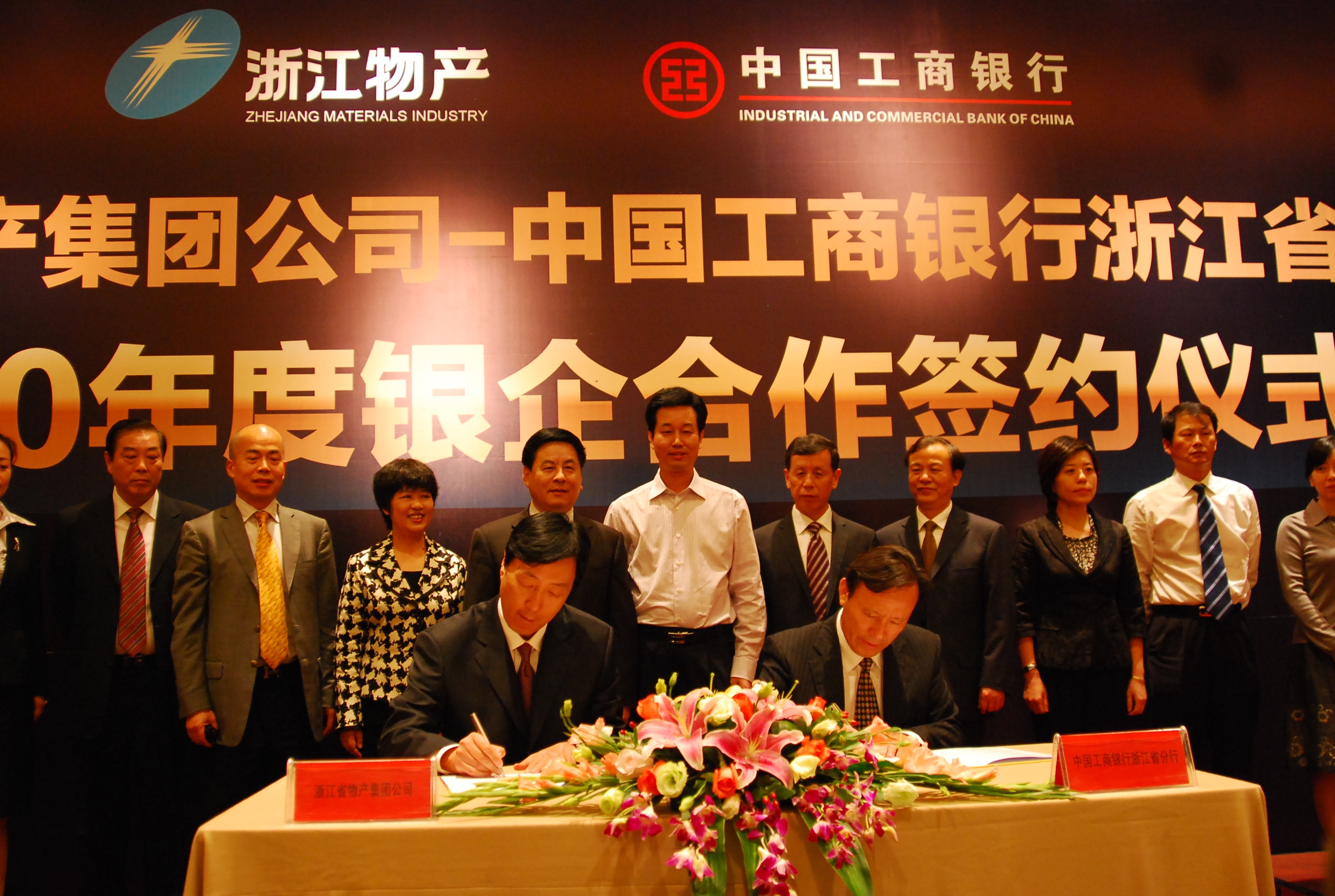 浙江物产集团与中国工商银行浙江省分行新一轮银企合作签约仪式10月11日在杭州香格里拉酒店隆重举行。这是浙江省最大的流通企业与最大的金融企业的强强战略合作,也是双方自2005年开展银企合作以来的再次签约。浙江省人民政府金融工作办公室主任丁敏哲,工商银行浙江省分行行长徐新桥、副行长倪百祥、郁炯彦,浙江省物产集团公司董事长胡江潮、总经理隋剑光、副总经理陈敏、张国强、党委委员董明生以及双方有关下属企业和总部相关职能部门负责人等参加了签约仪式。隋剑光总经理和郁炯彦副行长分别代表合作双方签署了银企战略合作协议。