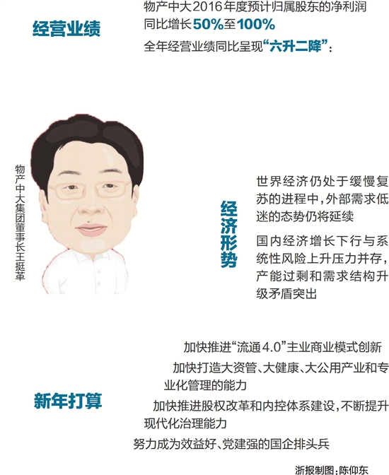 “中国经济长期向好的基本面没有改变,我们要进一步认清形势,坚定信心,始终保持清醒头脑,蹄疾步稳、行稳致远。”在1月21日的物产中大集团年会上,董事长王挺革表达了在2017年要“撸起袖子加油干”的决心。