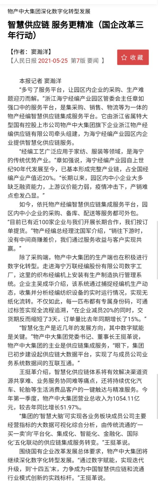 人民日报|物产中大集团数字化转型发展 | 智慧供应链 服务更精准